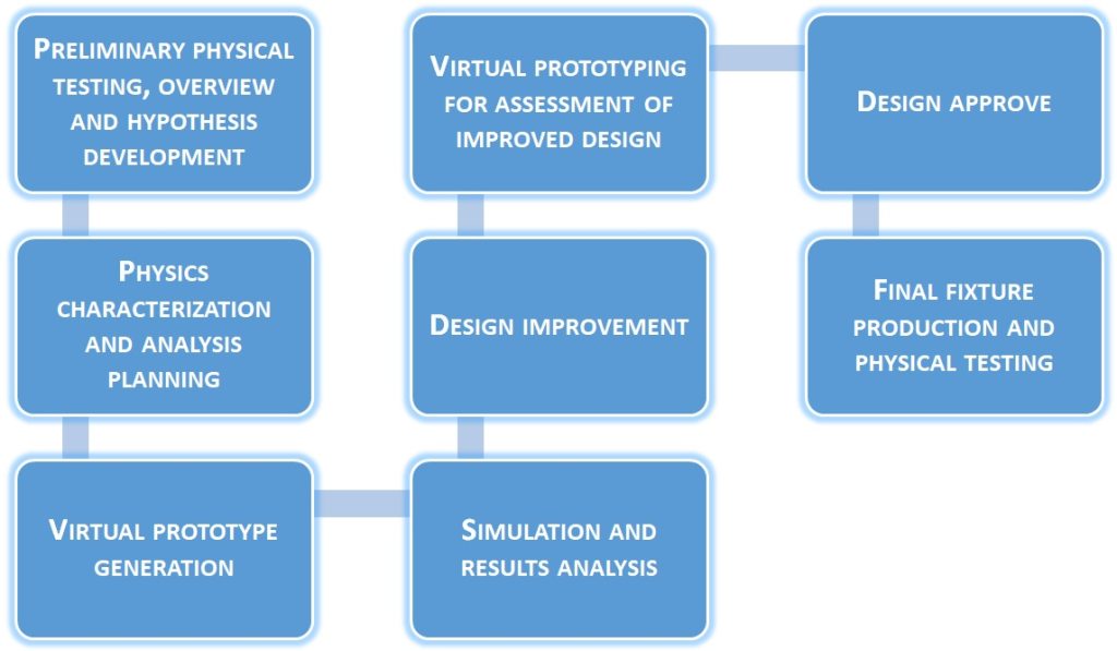 1. Preliminary physical testing, overview and hypothesis development – the first and probably most important step is to review the current status of the fixture. It begins with physical testing and analysis of obtained results, aiming to develop a hypothesis for the reason of the issues. It should result in a viable plan for further development of the project.