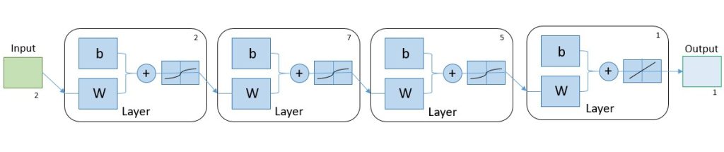 ANN is considered to be successfully trained if the regression value is greater than 0,9. Each of the hidden neural layers is activated by a selected nonlinear activation function. The activation functions used for the ANN operation in the MATLAB environment are respectively: for layers one and two sigmoidal – Logistic Sigmoid (Fig. 4(a)); for layer three tangential – Hyperbolic Tangent Sigmoid (Fig. 4(b)); for the output layer a linear activation function – and Linear transfer function (Fig. 4(c)) were used.