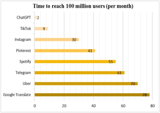 Figure 2. Time to reach 100 million users (per months) (Ebert & Louridas, 2023)