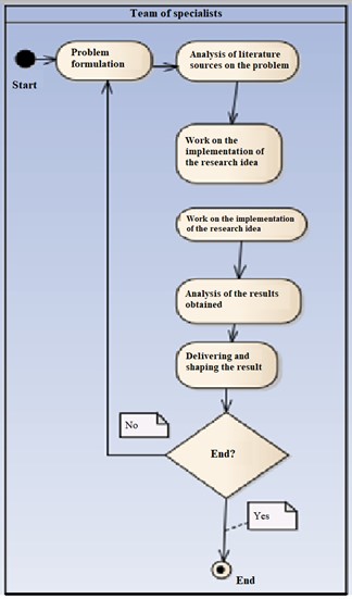 The steps in using artificial intelligence are presented, in Fig. 4 which facilitates understanding and managing the process of using artificial intelligence. For this purpose, a model of the activities in the application of intelligent decision support technologies based on current advances in artificial intelligence has been developed. To create the model, a specialized application for building architectural models was used, and an activity diagram was developed in the Unified Modeling Language (UML) (Booch et al., 1998).