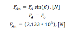 The normal force on the cylinder relative to the arm AB is calculated by formula (1):