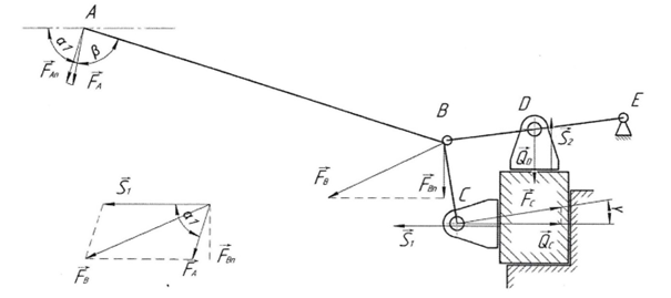 Fig. 2 shows the kinematic scheme of the specialized tightening device, with F a is the cylinder force; S – reactions of the supports and Q – compressive forces, and in Fig. 3 the created manipulation scheme of the process.