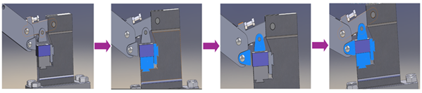 Fig. 7 shows the principle of operation of the designed specialized tightening device in the open and closed position with a workpiece inserted.