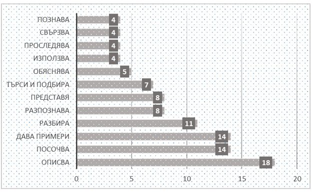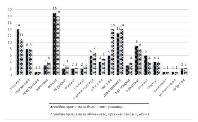 Съпоставка и брой на активните глаголи в учебните програми
