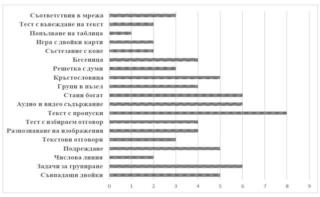 Според резултатите от анализа има пълно съответствие на предвидените в документацията компетентности по история както за обучението в чужбина, така и за българските училища. Използваните глаголи в нормативните документи са едни и същи. Те отговарят на първите три нива по ранг от познавателната класификацията на Блум, като залагат основно на запаметяване, възпроизвеждане и прилагане на знания за историята на България7. В същото време, учебният процес в българските неделни училища коренно се различава от този в България (Simeonov 2025, pp. 47 – 54). Преобладаващата част от децата на нашите сънародници, които са в чужбина, не говорят или слабо владеят български език и много трудно усвояват заложения учебен материал. Това изправя ученици, учители и родители пред предизвикателства, които трудно се преодоляват. Необходимостта от учебни инструменти, които да подкрепят обучението на българските деца зад граница, провокира създаването на дигитално интерактивно учебно помагало със свободен достъп за обучение на български език в чужбина.
