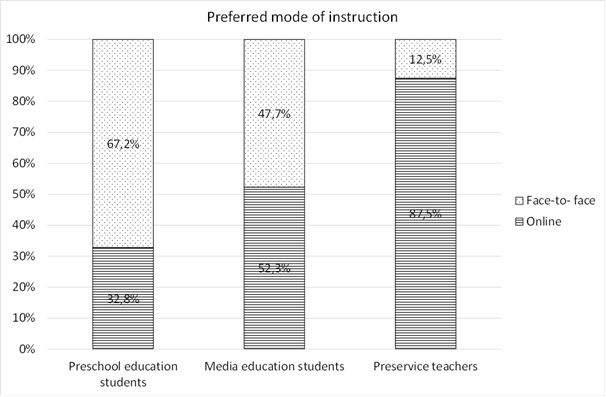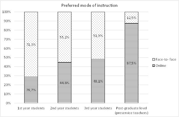 Further, participants were asked to reveal their preference by answering the question: “If it were a matter of choice, which type of instruction would you choose – online or face-to-face?”