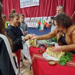 Празникът завършва с поднасянето на огромна торта с български червени розички, изрисувана книга и буквички, от която за 15 минути не остава нищо.