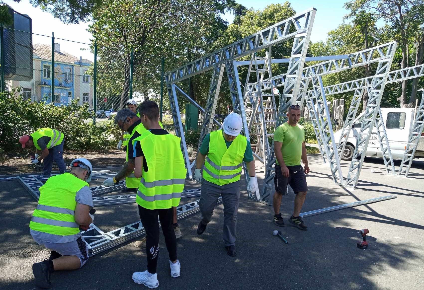Първият включва изграждане на алуминиева конструкция и покриването ѝ със соларни панели. Проектирането, изчислението на конструкцията и програмното онагледяване на проекта отнемат седмица, а монтажът е извършен за два дни.