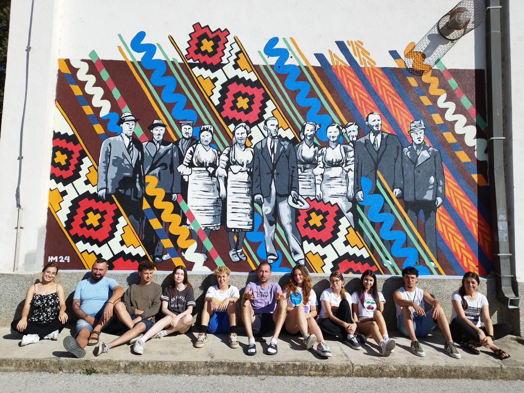 8 ученици от Кюстендил от XI и XII клас, под напътствията на своя учител Евгени Серафимов и на неговите двама пораснали вече възпитаници – графичния дизайнер Дияна Бориславова и бъдещия архитект Живко Христов, интерпретират върху една от стените на средното училище в Босилеград снимка от миналото.