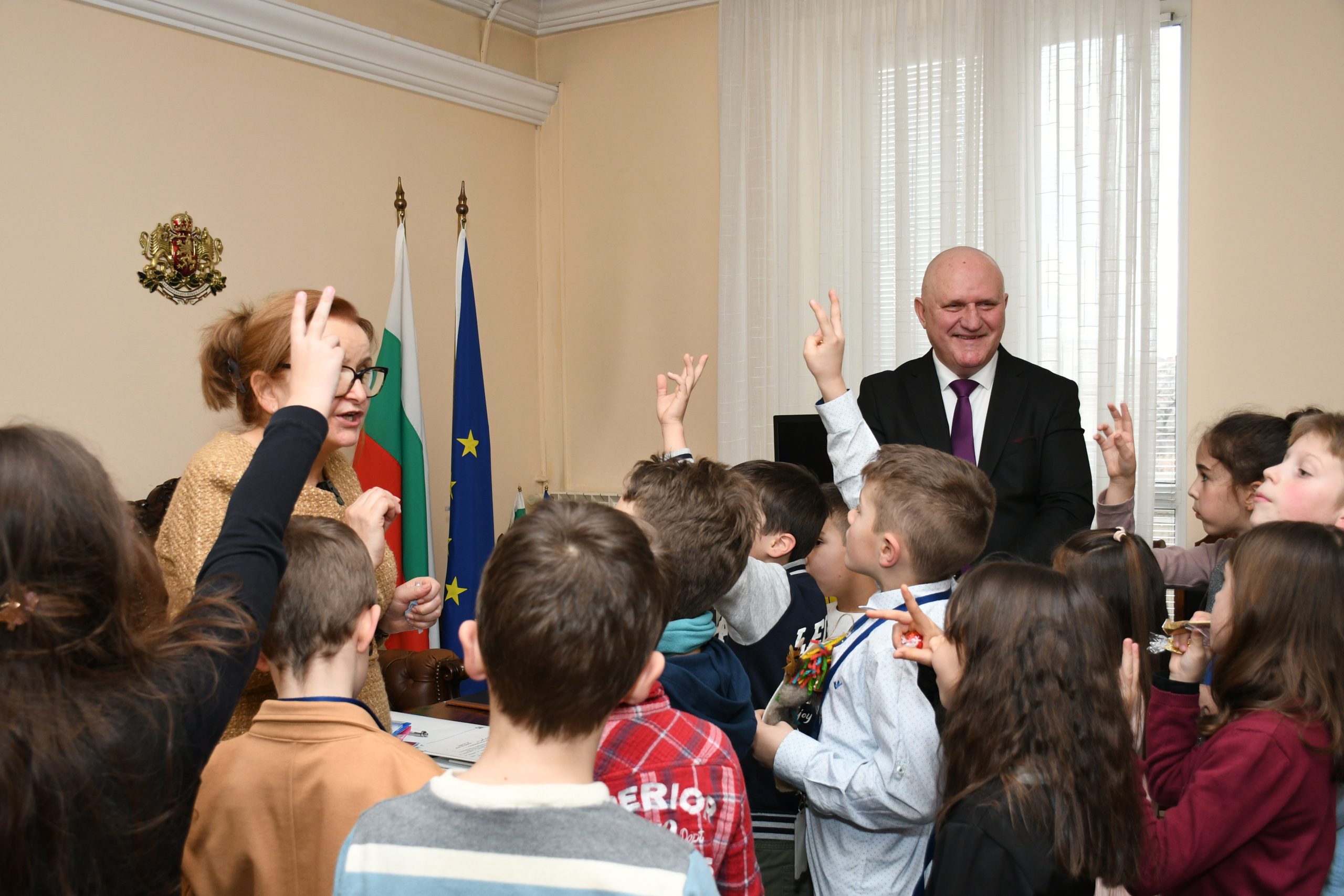 А министърът ги покани да разгледат кабинета му и им пожела един ден те да бъдат на това историческо бюро и да взимат най-добрите решения за децата на България.