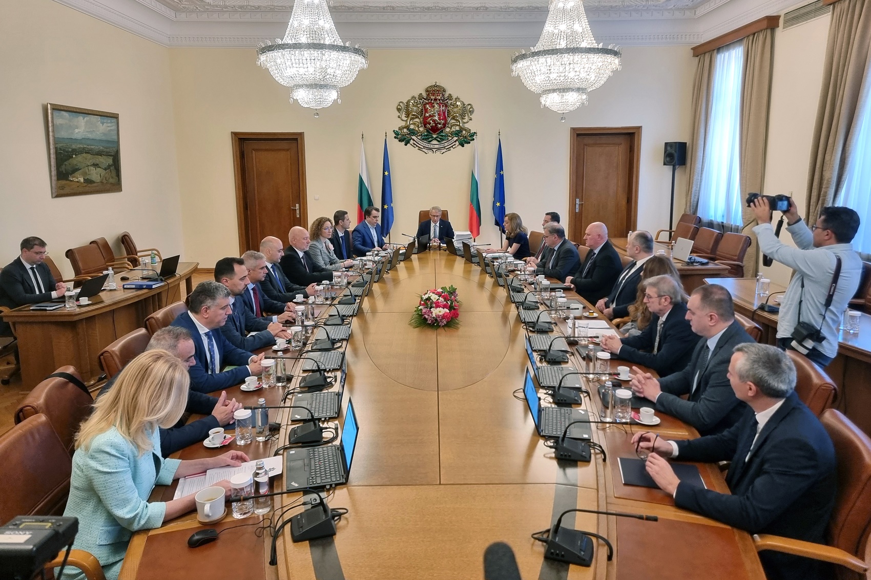 София (3 април 2024) В сградага на Министерски съвет се провежда заседание на правителството. На снимката: министър-председателят в оставка Николай Денков (в средата). Снимка: Христо Касабов/БТА (ЕВ)
