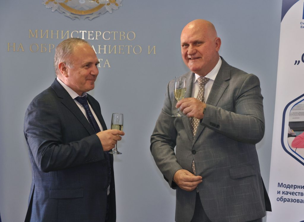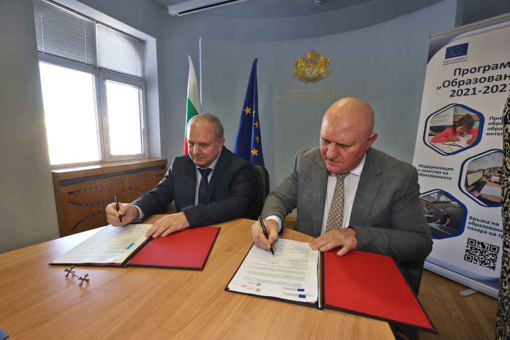 На подписването на договора присъстваха и служебният заместник-министър на образованието и науката Наталия Митева, главният секретар на МОН Любомир Йосифов, директорът на дирекция „Финанси“ и ръководител на проекта „От висше образование към заетост“ Соня Кръстанова и директорът на дирекция „Управление и изпълнение на проекти“ Владимир Станчев.