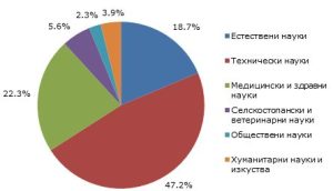 По области на науката през 2023 г., както и през предходната година, най-голям относителен дял имат разходите за НИРД в областта на техническите науки – 47,2%, или 693,5 млн. лв. (50,5%, или 638,6 млн. лв. през предходната година). Следват медицинските и здравните науки с дял от 22,3%, или 326,9 млн. лв. (20,5% през 2022 г.), естествените науки – 18,7%, или 273,9 млн. лева, селскостопанските и ветеринарните науки – 5,6%, хуманитарните науки и изкуствата – 3,9%, и обществените науки – 2,3%.