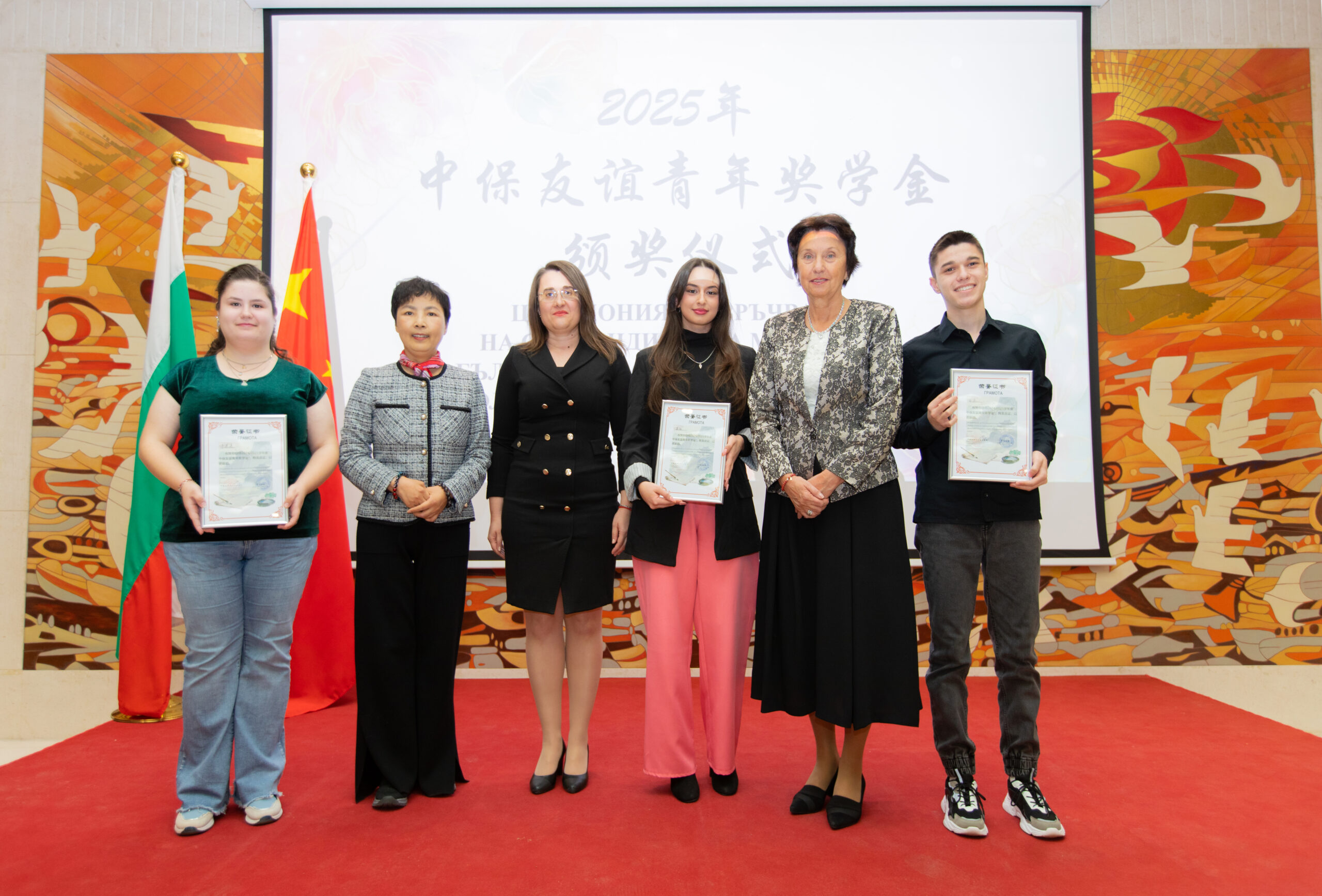 29 български ученици и студенти бяха отличени със стипендии по Програмата „Стипендия за младежи – Българо-китайско приятелство“ за 2025 г. Сертификатите им бяха връчени на официална церемония от посланика на Китай Н.Пр. Дай Цинли и заместник-министъра на образованието и науката на България д-р Емилия Лазарова, съобщава Пресцентърът на МОН.