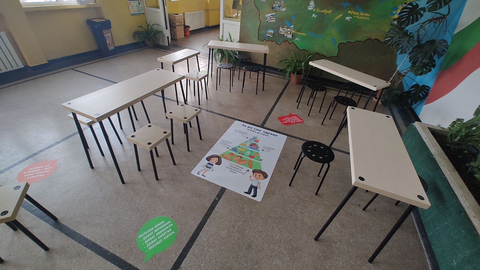 Пространствата в коридорите са традиционно украсени с произведения на ученици.
