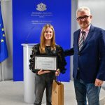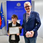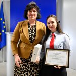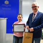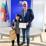 Зам.-министърът връчи наградата на дванайсетокласничката Дилек Неджати от Професионалната гимназия по туризъм „Иван П. Павлов“ в Русе. Журито избра нейната снимка за победител в националния фотоконкурс. Освен грамота и лимитиран календар на „Аз-буки“ с включени всички 13 отличени снимки Дилек получи и смартфон.