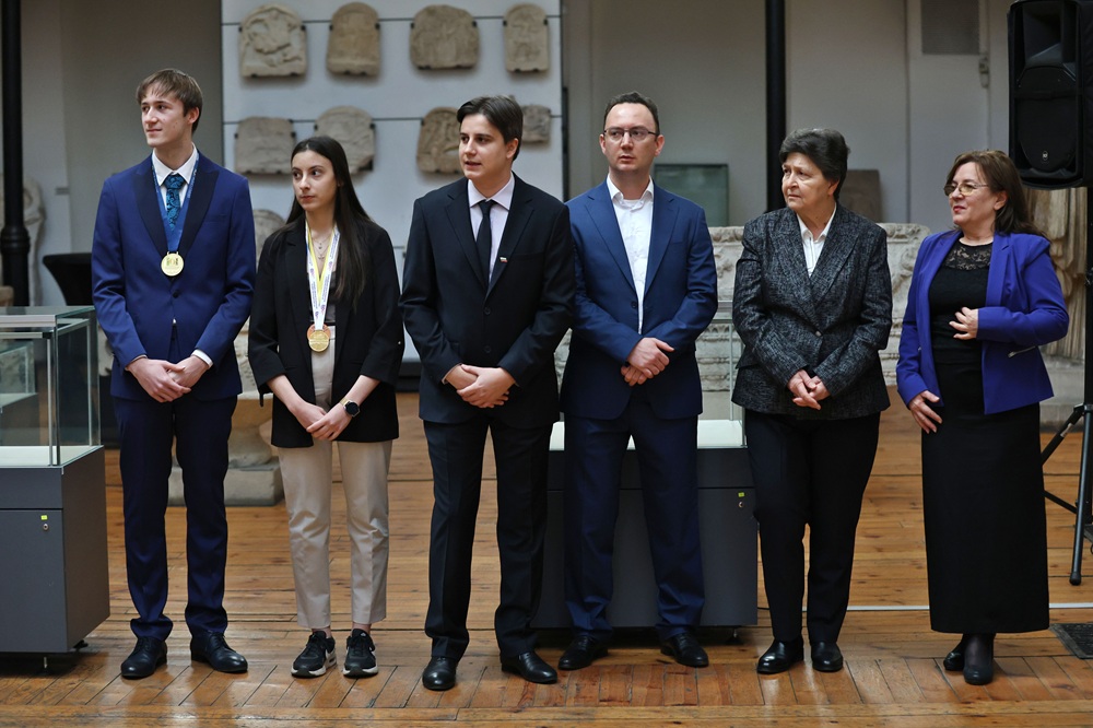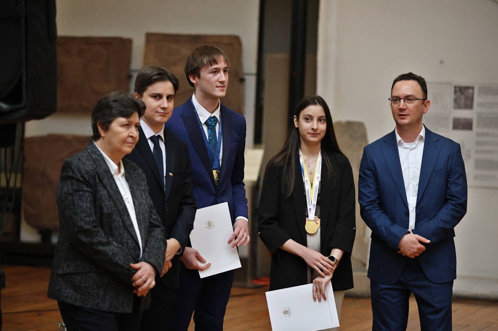 Осемте златни медалисти от международни олимпиади по науки получиха грамотите си от вицепрезидента Илияна Йотова.