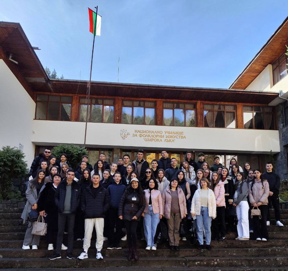 Учениците от село Валя Пержей бяха посрещнати в Националното училище за фолклорни изкуства „Широка лъка“, където за тях бе представена специална фолклорна програма.