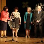 Георги Трушков – основател и първи директор, Донка Кирицова и Радка Дончева с плакет с Дебеляновия лик за професионализма и отдадеността им през годините към училището.