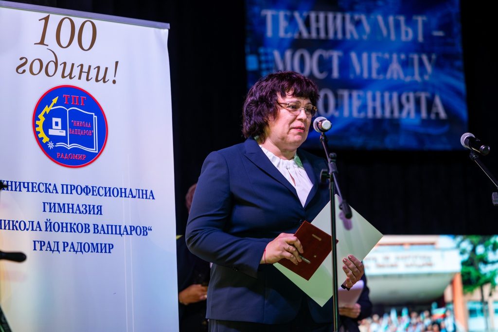 Началникът на кабинета на министъра на образованието и науката инж. Таня Михайлова поздрави учениците, преподавателите и ръководството на Техническата професионална гимназия „Никола Й. Вапцаров“ в Радомир по повод 100-годишнината от създаването на училището, съобщават от Пресцентъра на МОН.