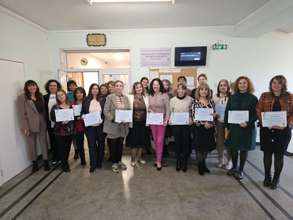 Общо 100 директори, заместник-директори и учители от Софийска област обменят опит и споделят добри практики по време на участието си в един от петте майсторски класа, организирани от Регионалното управление на образованието – София-област, по модул от Националната програма на МОН „Квалификация на педагогическите специалисти“.