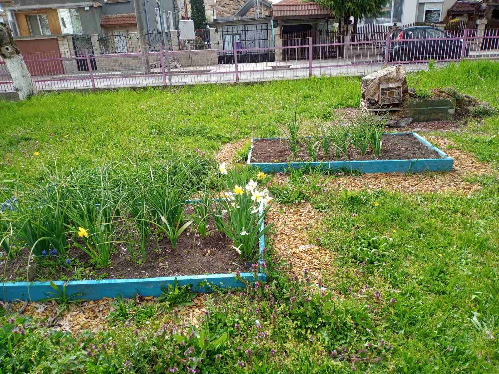 Много дейности са обвързани с проекта им за кръгова икономика – поддържането на градината в училищния двор. В нея има „хотел“ за насекоми с домова книга, сензорна пътека, градина за пеперуди, къщички за птици, алпинеум с билкова градина и поле с горски плодове.