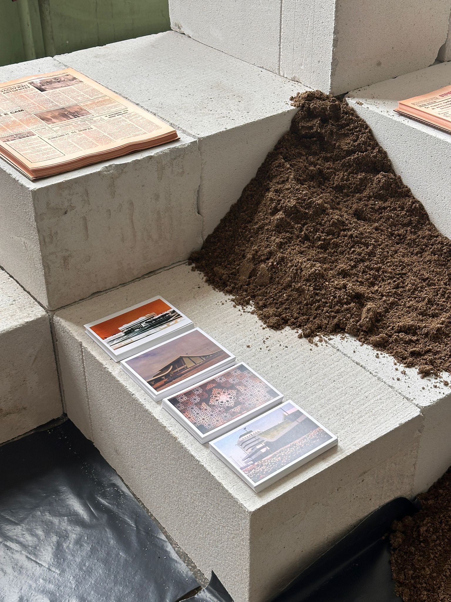 Един от най-силните моменти в експозицията е простият, почти сценографски жест – пясъкът под краката на посетителя.