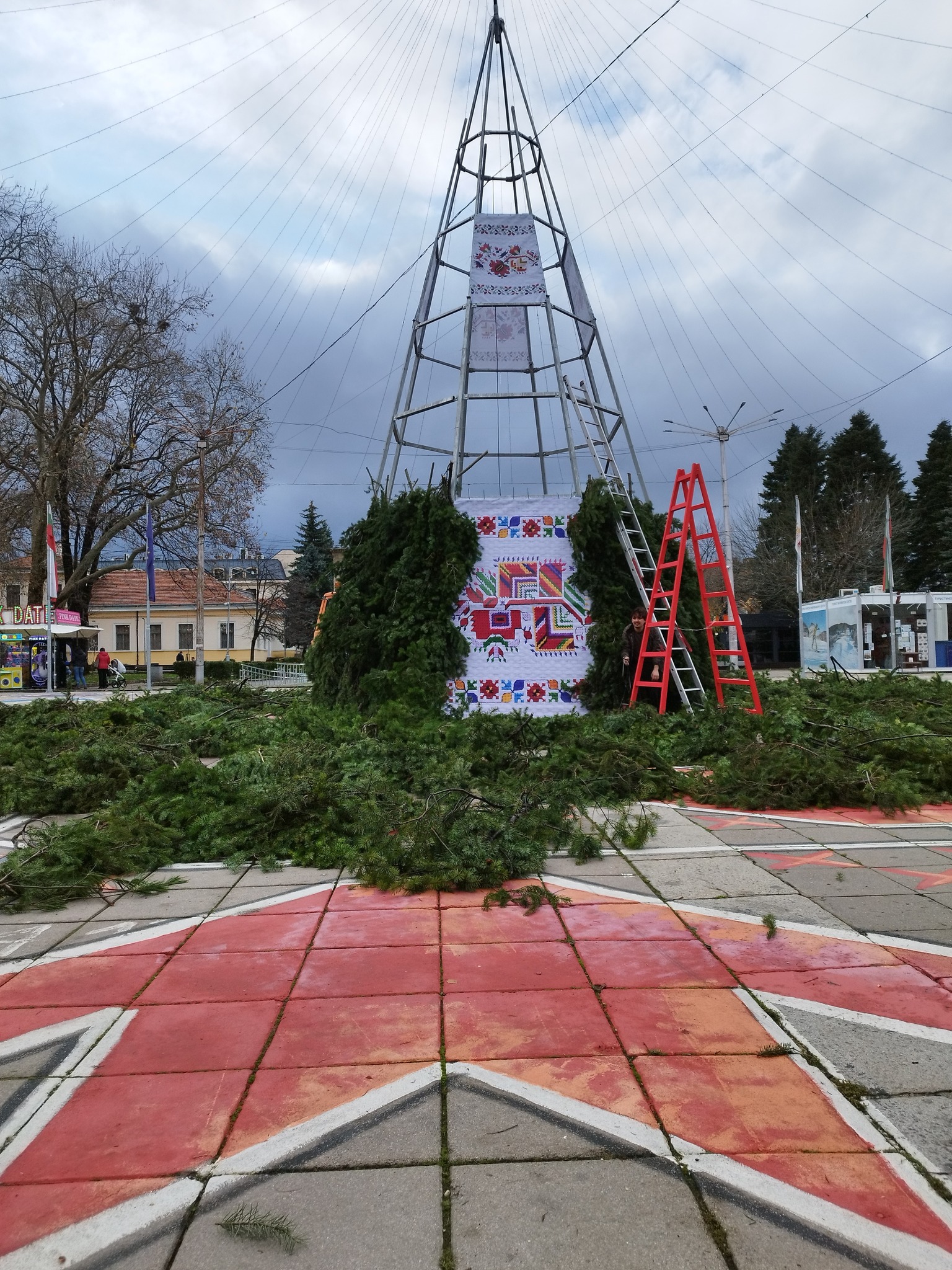 „Това коледно дърво е точно като народното изкуство – прави се от всички, всеки дава най-доброто, на което е способен, и всичко за едната хубост. Елхата прилича на светеща в тъмното нощна лампа, а на светещите „прозорчета“ грее клончето от традиционната кюстендилска шевица. Елхата става естествен център на монументалната шевица от Панагия, която свети с непокътнати цветове – казва той. И допълва: – На площада вече мирише на Коледа, на дом, на семейство, на общност.“
