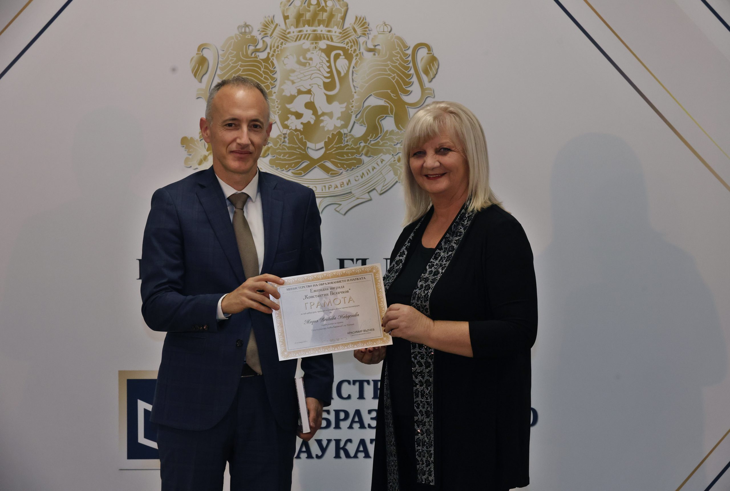 „Награди като тази са стимул за вас и вдъхновение за останалите учители“, заяви министър Красимир Вълчев.