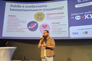 от СУ „Любен Каравелов“ в Пловдив Георги Стоев. Той е бивш възпитаник на „Заедно в час“, а висшето си образование е завършил в УАСГ със специалност „Архитектура“. Представяйки интересната тема „Математиката като глобална компетентност“ той разказа защо е необходимо днес учениците да имат такава компетентност. А този термин най-общо може да бъде обяснен като овластяване на учениците с инструменти, с които да разрешават проблеми. Глобалната компетентност се основава на предметни знания, нагласи и умения. В часовете си Стоев е разработил заедно с ученици на различна възраст много интересни уроци.