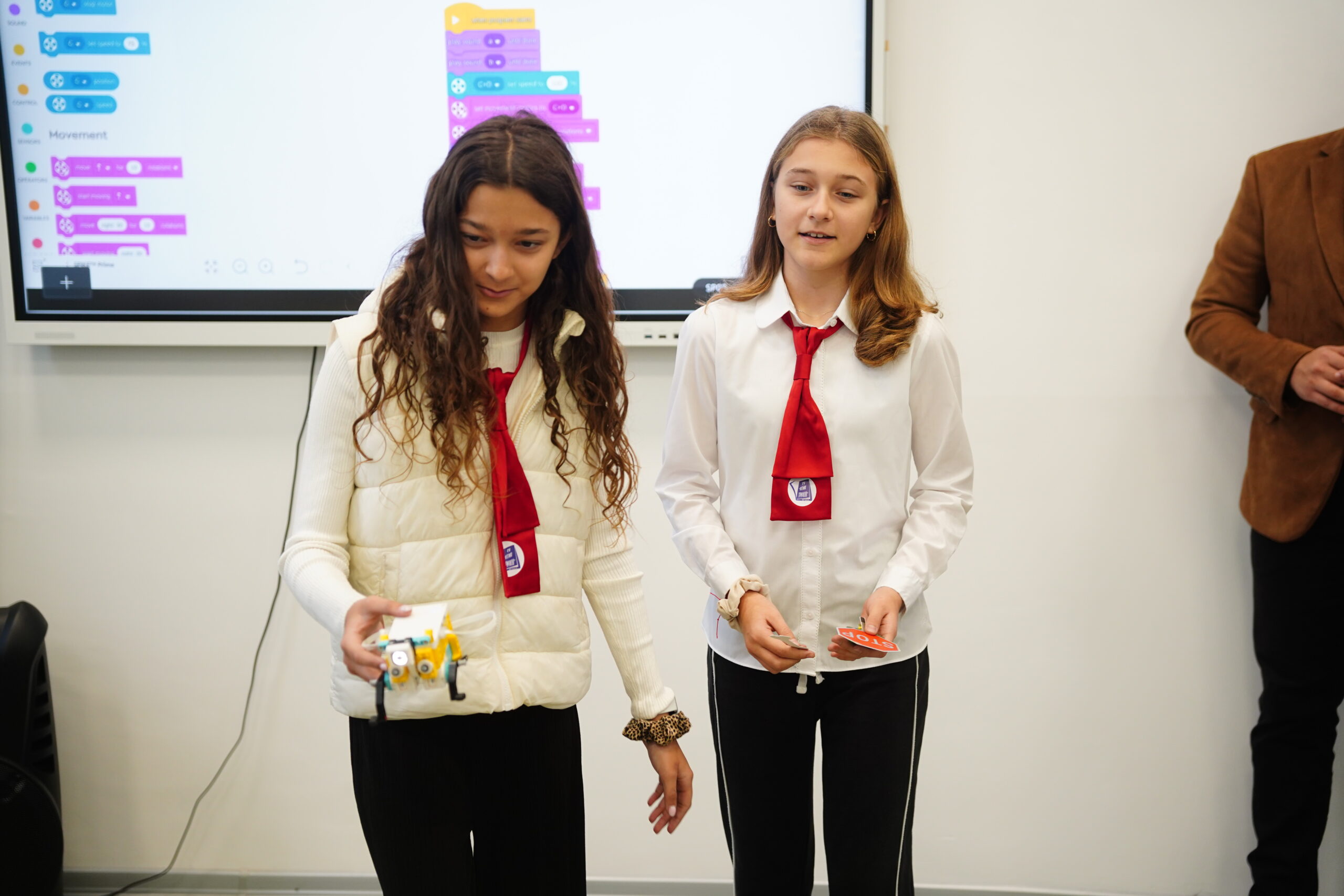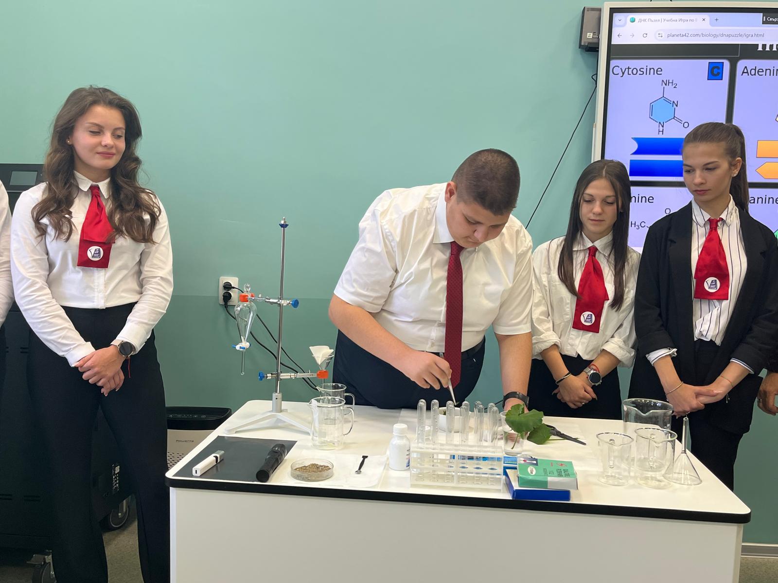 Учениците демонстрираха умения за действието на силата на триене чрез модел, конструиран от LEGO елементи „Роботика без граници“ и „Цветната тайна на листата: хлорофил под микроскоп“. Гостите присъстваха и на опити в частта за природни науки.