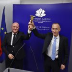 В края на церемонията двамата символично удариха училищен звънец, с което по традиция се предава поста в МОН.