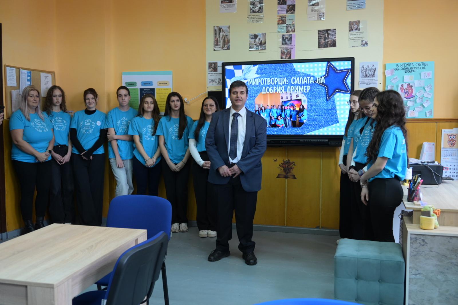 В Профилираната гимназия „Д-р Иван Панов“ и в ОУ „Н.Й. Вапцаров“ те се запознаха с напредъка по програмата „Стъпки заедно“, насочена към изграждане на по-позитивна и сигурна училищна среда. Основен акцент на инициативата през тази година е превенцията на кибертормоза.