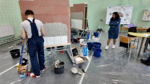 В дисциплината „Мазилки, шпакловки и бояджийски работи“