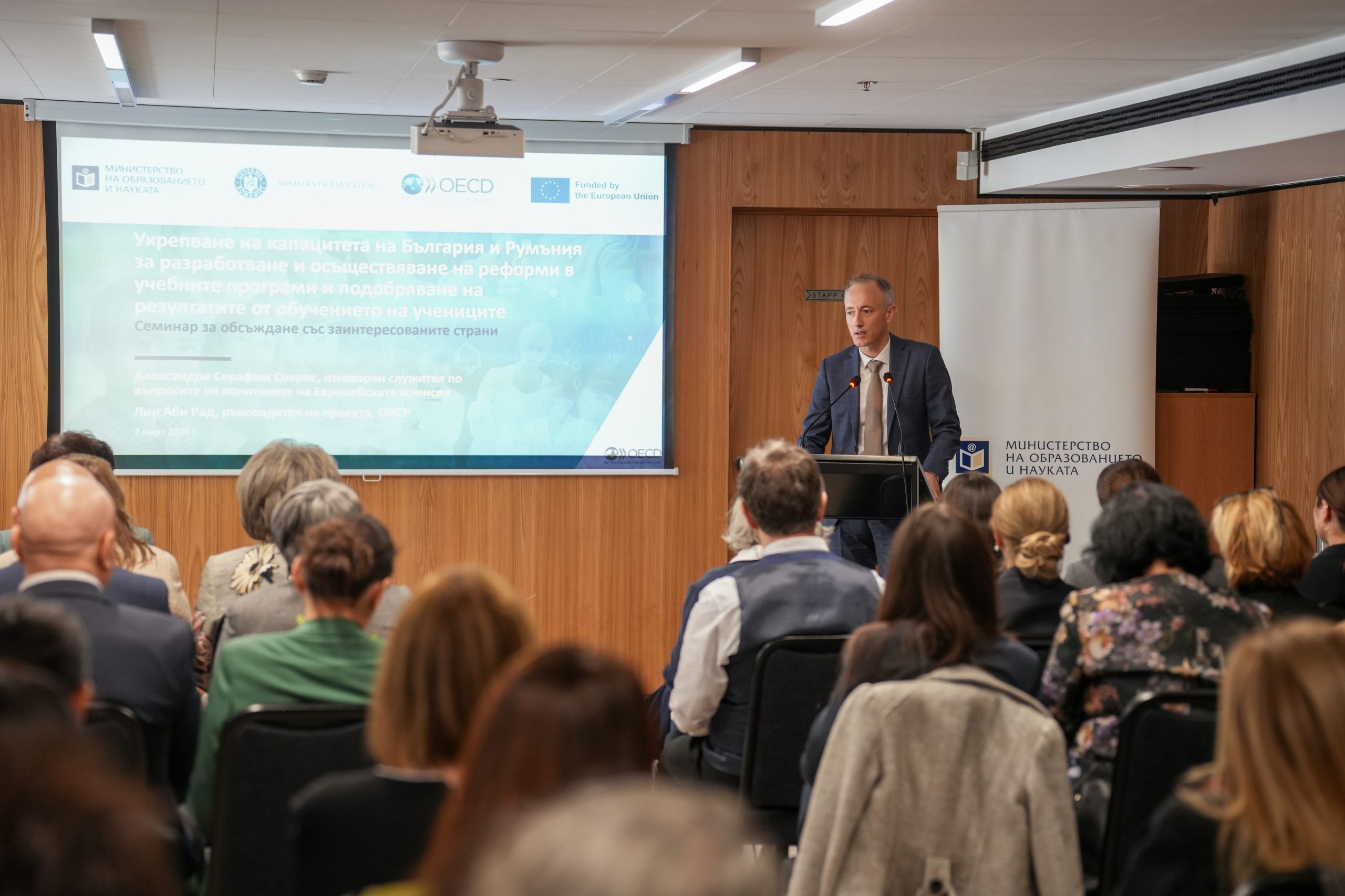 Започва първият етап от международния проект за модернизация на учебните програми в V – VII клас с участието на България и Румъния и с подкрепата на Организацията за икономическо сътрудничество и развитие. В рамките на тази фаза експерти от МОН, синдикални и работодателски организации, директори и учители ще набележат основните приоритети в разработването, прилагането, мониторинга и оценката на учебните програми.
