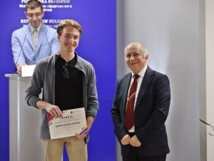 към Българската академия за науките чл. кор. Петър Бойваленков връчи наградата на Института на проект „Q-bit“, дело на Дарий Топузов от Технологичното училище „Електронни системи“ към Техническия университет – София.