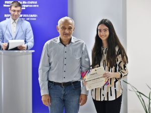 към Министерството на образованието и науката д-р Милена Дамянова. Първата е за Елица Декова и Яна Йорданова от Американския колеж в София за изследването им в сферата на дискретната математика – „Алгебрично изследване на забранена структура в интервални графи“.