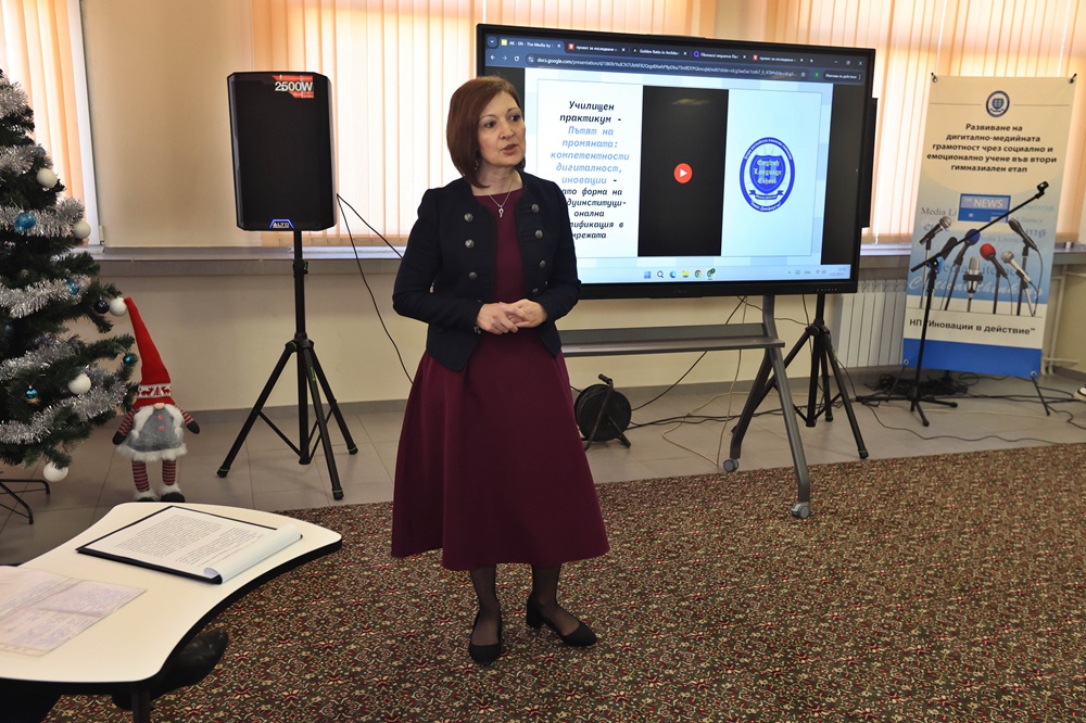 В рамките на междуинституционалната квалификация бе представена и практика, свързана с третата иновация, която гимназията прилага в момента – „Развиване на дигитално-медийната грамотност чрез социално и емоционално учене във втори гимназиален етап“. По нея се работи през избираемия модул на профилиращите предмети история, български език, чужди езици и гражданско образование от общообразователната подготовка.