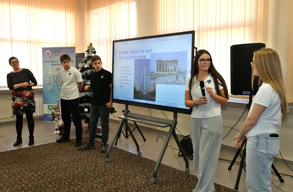 Пред гостите бяха представени и трите модела. Учителите споделиха как подготвят даден урок, който е интегриран и проектно базиран, какви цели си поставят, как търсят пресечните точки между отделните учебни предмети, какви дейности залагат и защо го правят. А учениците представиха проектите, които са реализирали наскоро в резултат на обучението си. Моделът 1:1 бе представен от осмокласници. За резултатите от STEM обучението говореха ученици във втори гимназиален етап от групите за профилирана подготовка по биология, химия, физика и информационни технологии. Представители на XI и XII клас представиха и проекти, които са реализирали във връзка с иновацията за дигитално-медийната грамотност.