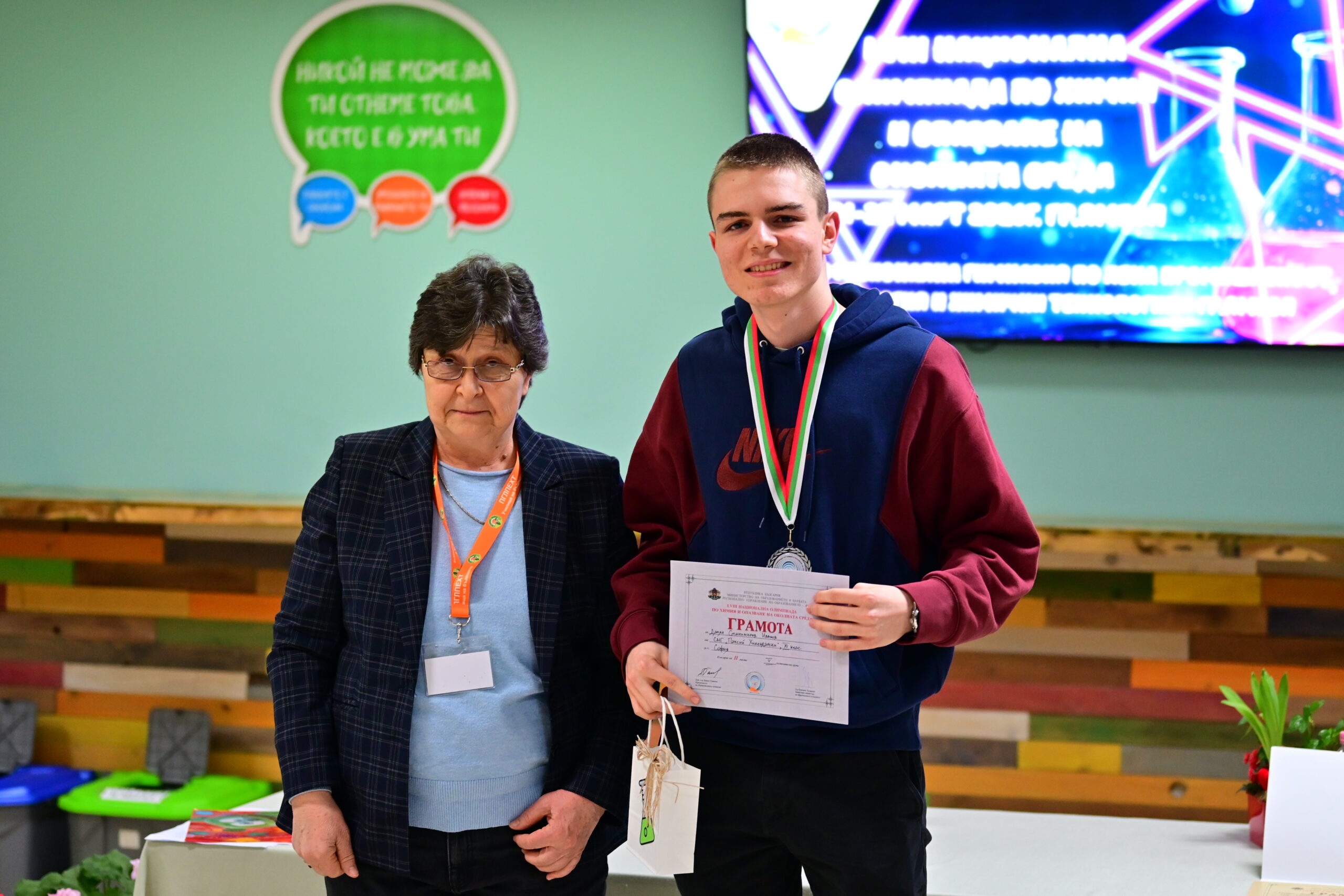 Етикети: екология и химични теорииекспериментален кръгМОННационална олимпиада по химияпет възрастови групипобедителиПрофесионална гимназия по лека промишленостсъстезаниетеоретична частЯмбол
