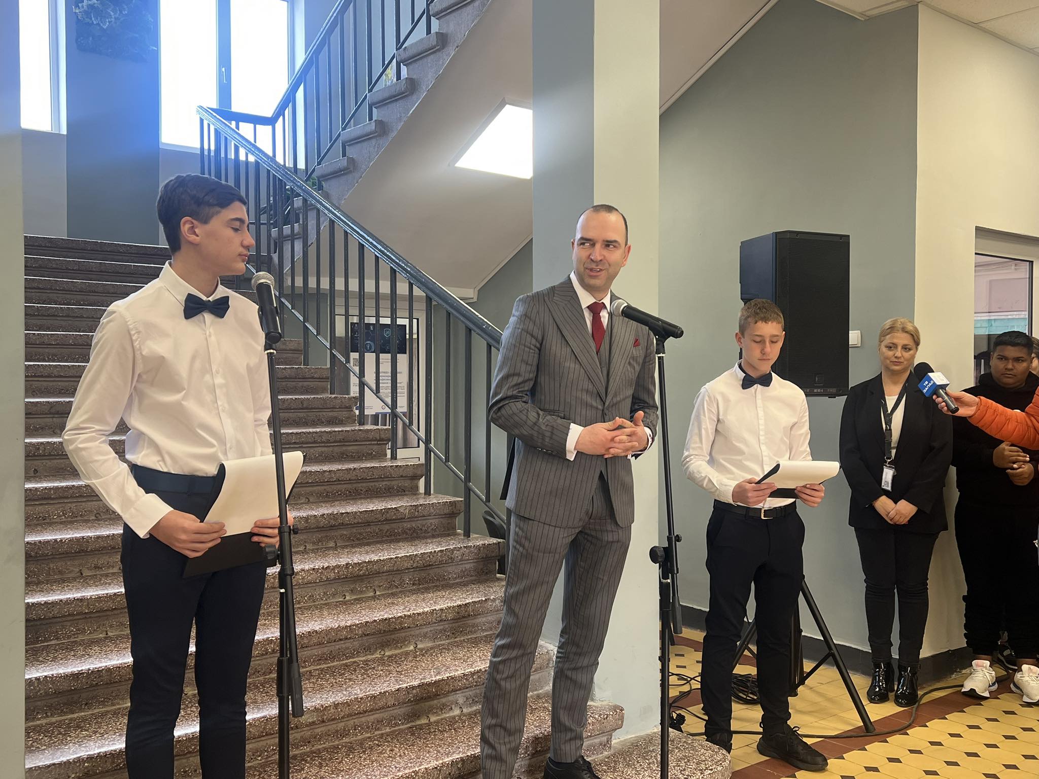 Инж. Огнян Атанасов поздрави директора на гимназията и отправи послание към учениците да използват възможностите на новия център като основа за личностно и професионално развитие, така че в бъдеще да се реализират успешно и с увереност.
