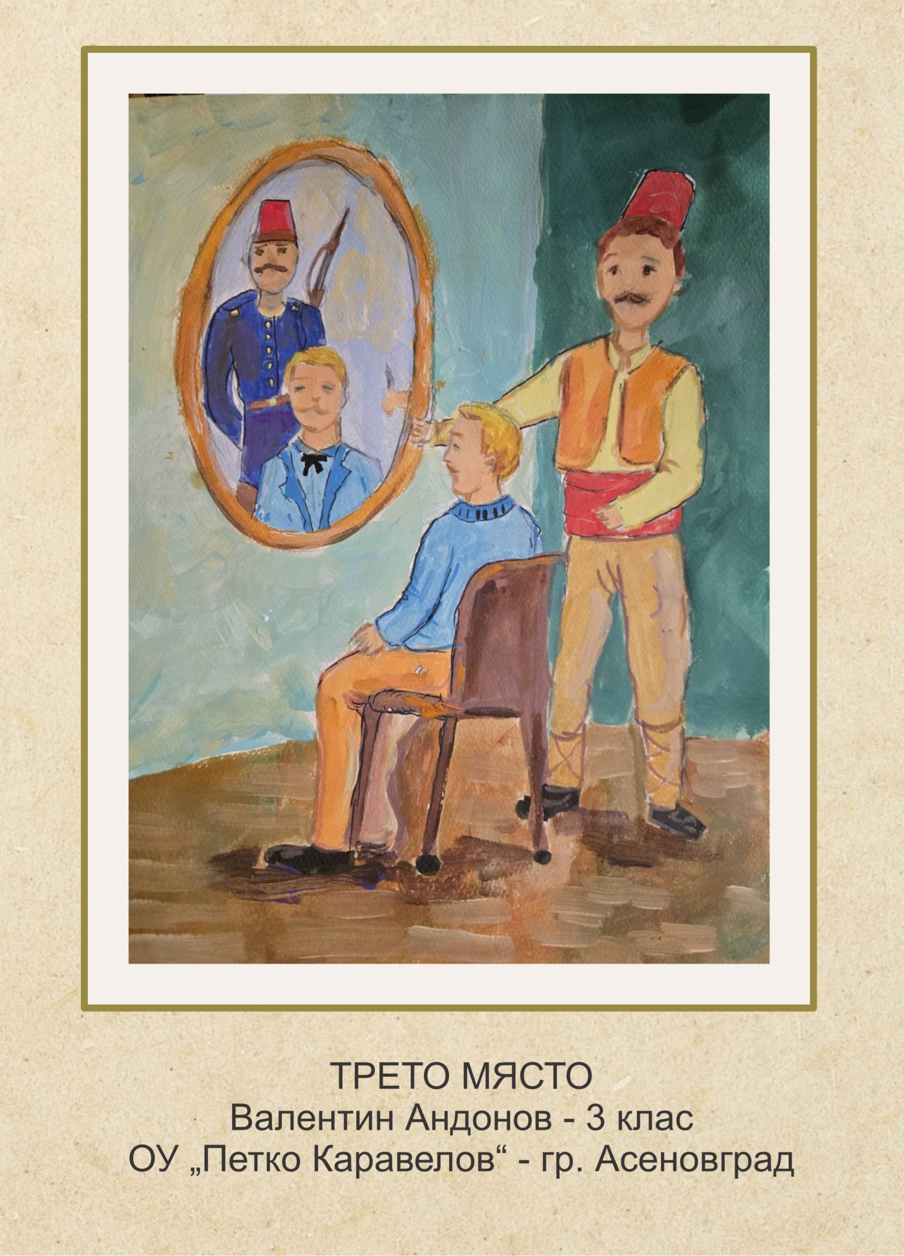 В направление „Изобразително изкуство“ в групата I – V клас първи е Адриан Александров Илиев (IV клас, 112. ОУ „Стоян Заимов“, София). Второто място е за Бейсин Бейсинов (IV клас, ОУ „Н.Й. Вапцаров“, Попово), а третото – за Валентин Андонов (III клас, ОУ „Петко Каравелов“, Асеновград).