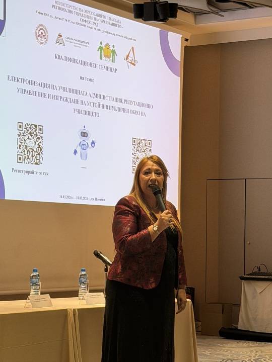 Семинарът под надслов „Електронизация на училищната администрация, репутационно управление и изграждане на устойчив публичен образ на училището“ е открит от заместник-министърът на образованието и науката д-р Емилия Лазарова и началникът на РУО – София-град, д-р Елеонора Лилова.