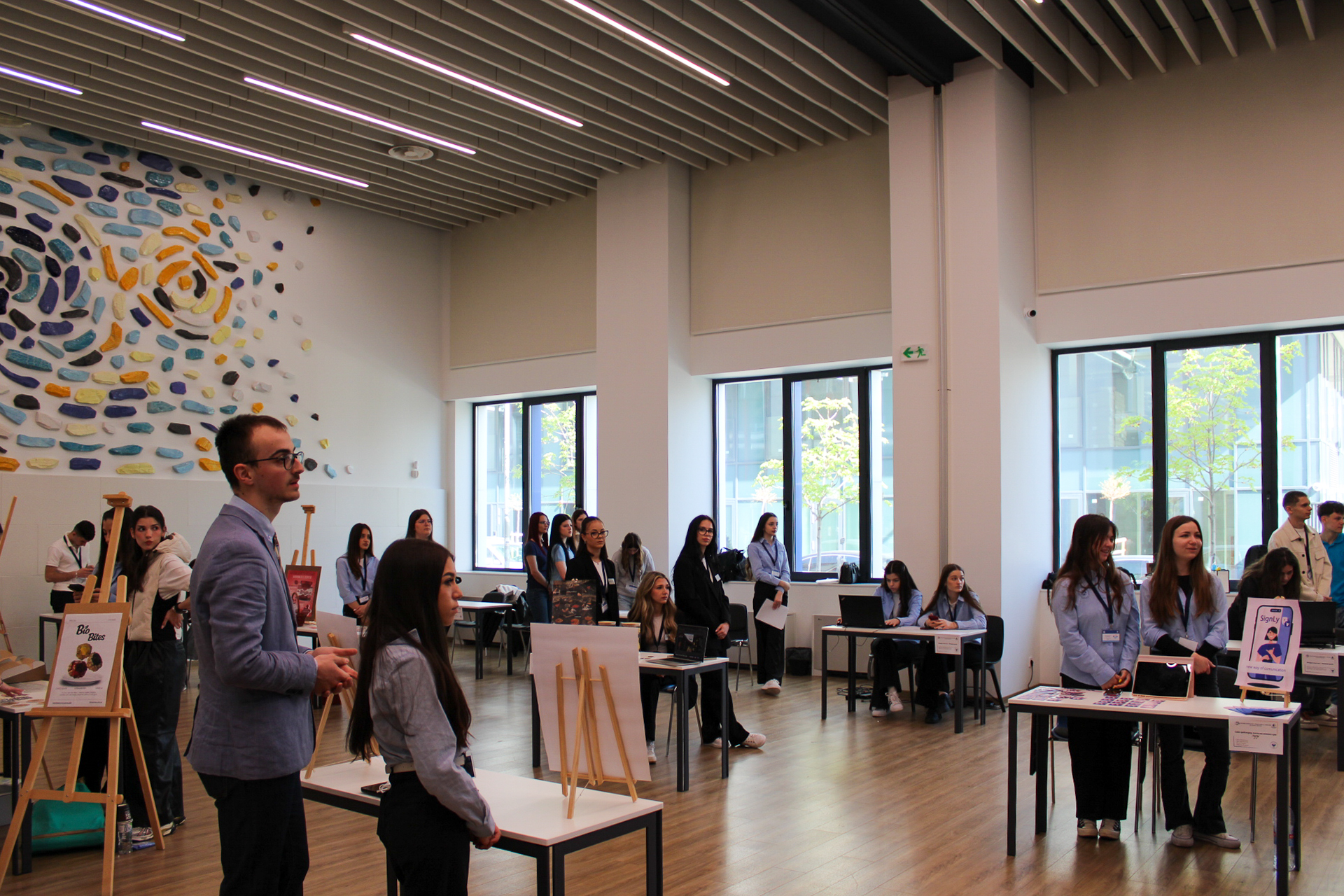 В рамките на събитието бяха представени и ученическите проекти – общо 20 бизнес концепции в областта на интериорния, графичния дизайн и рекламната графика. Те впечатлиха с креативност, екипна работа и практическа насоченост. С подкрепата на ученици-ментори от гимназията бяха създадени вдъхновяващи дизайнерски и маркетингови кампании, които показаха силата на сътрудничеството, обмена на идеи и ученето чрез практика.