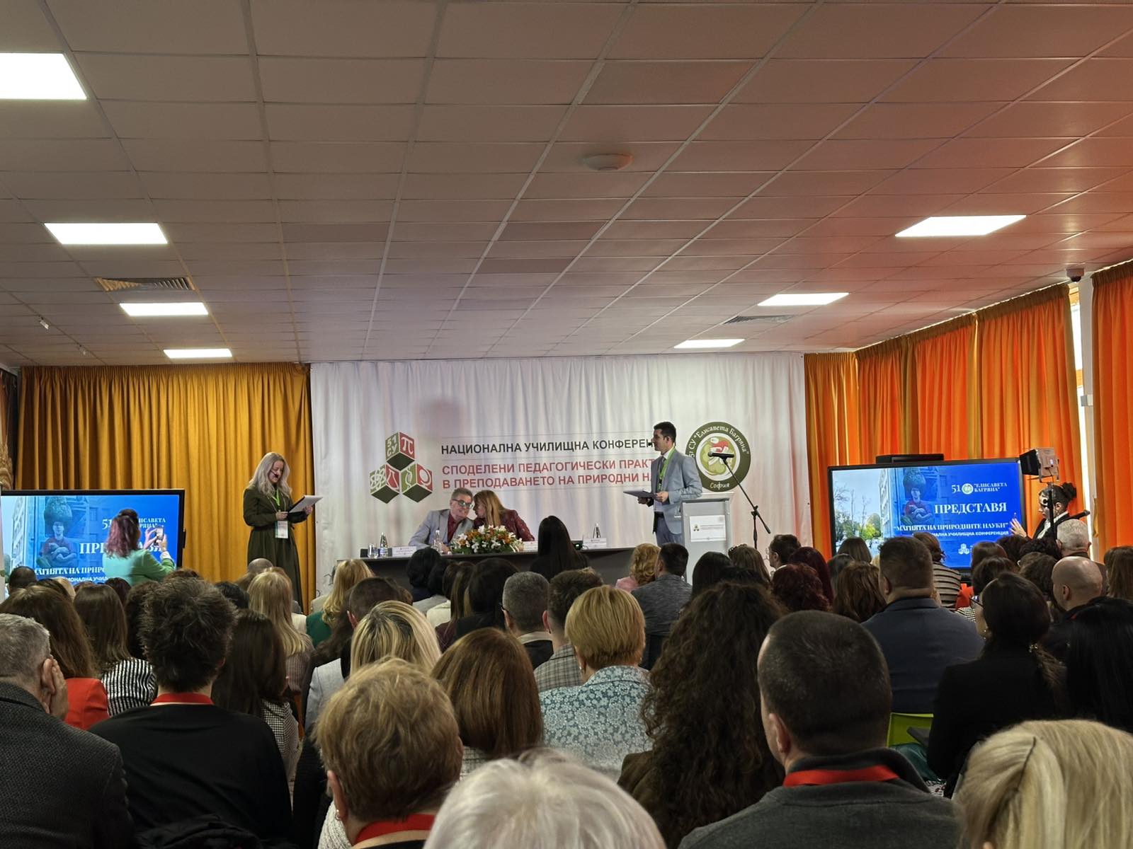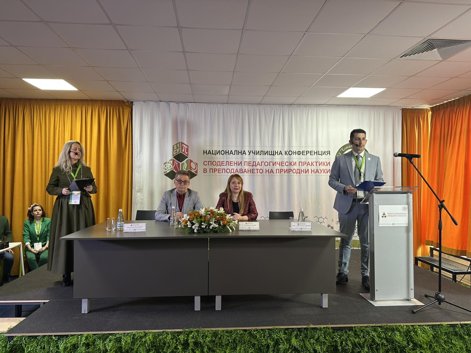 В откриването на националната училищна конференция „Споделени педагогически практики в преподаването на природни науки“ участваха проф. Найден Шиваров – директор на Националния STEM център, Емил Спахийски – директор на Национално издателство за образование и наука „Аз-буки“, Веселка Асенова – началник на РУО – Видин, Виолетка Петкова – главен експерт на СБУ, и други.