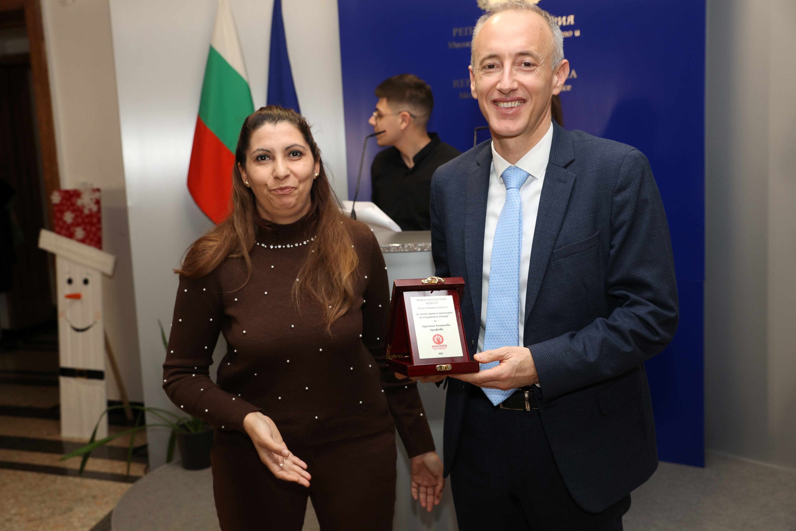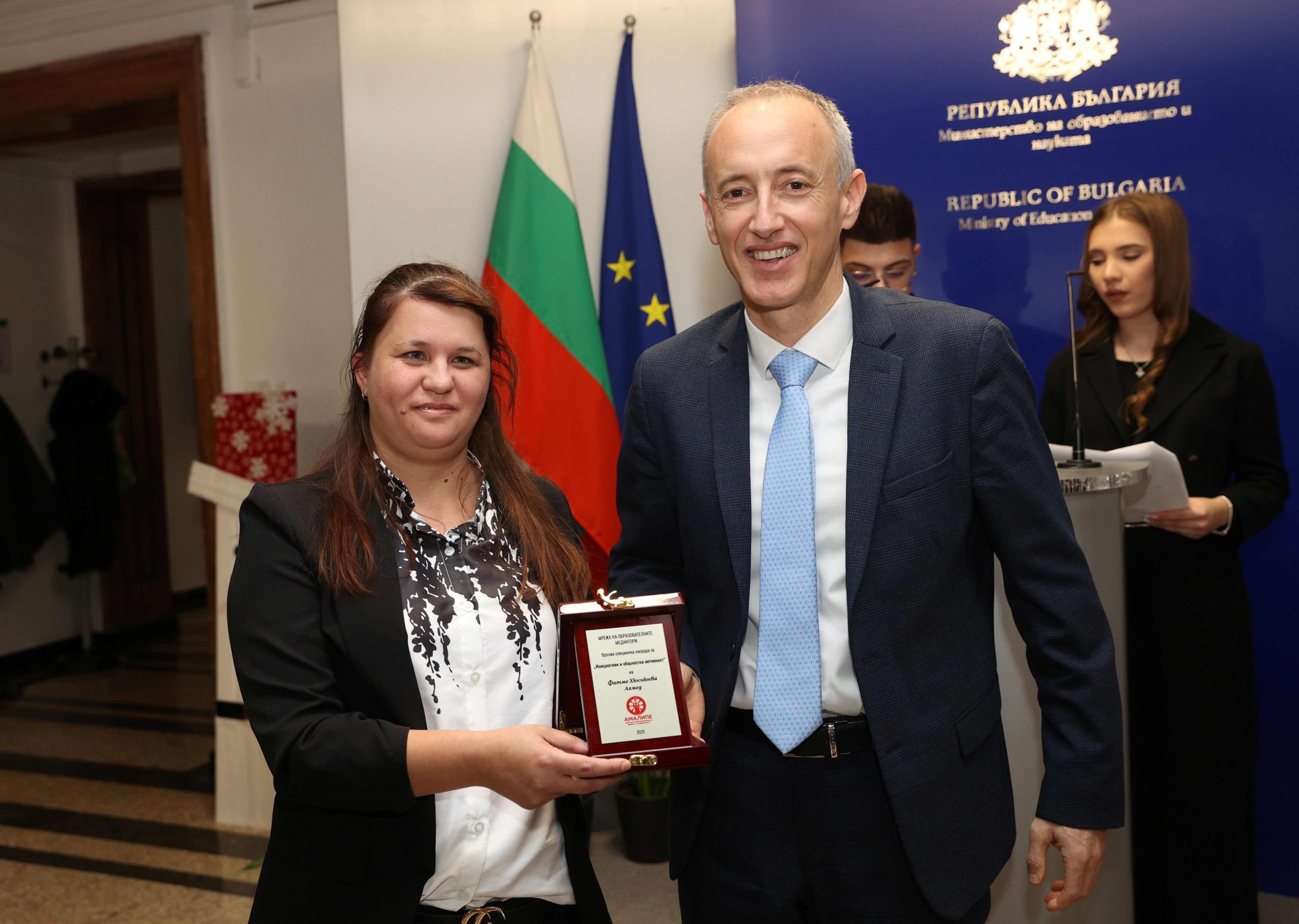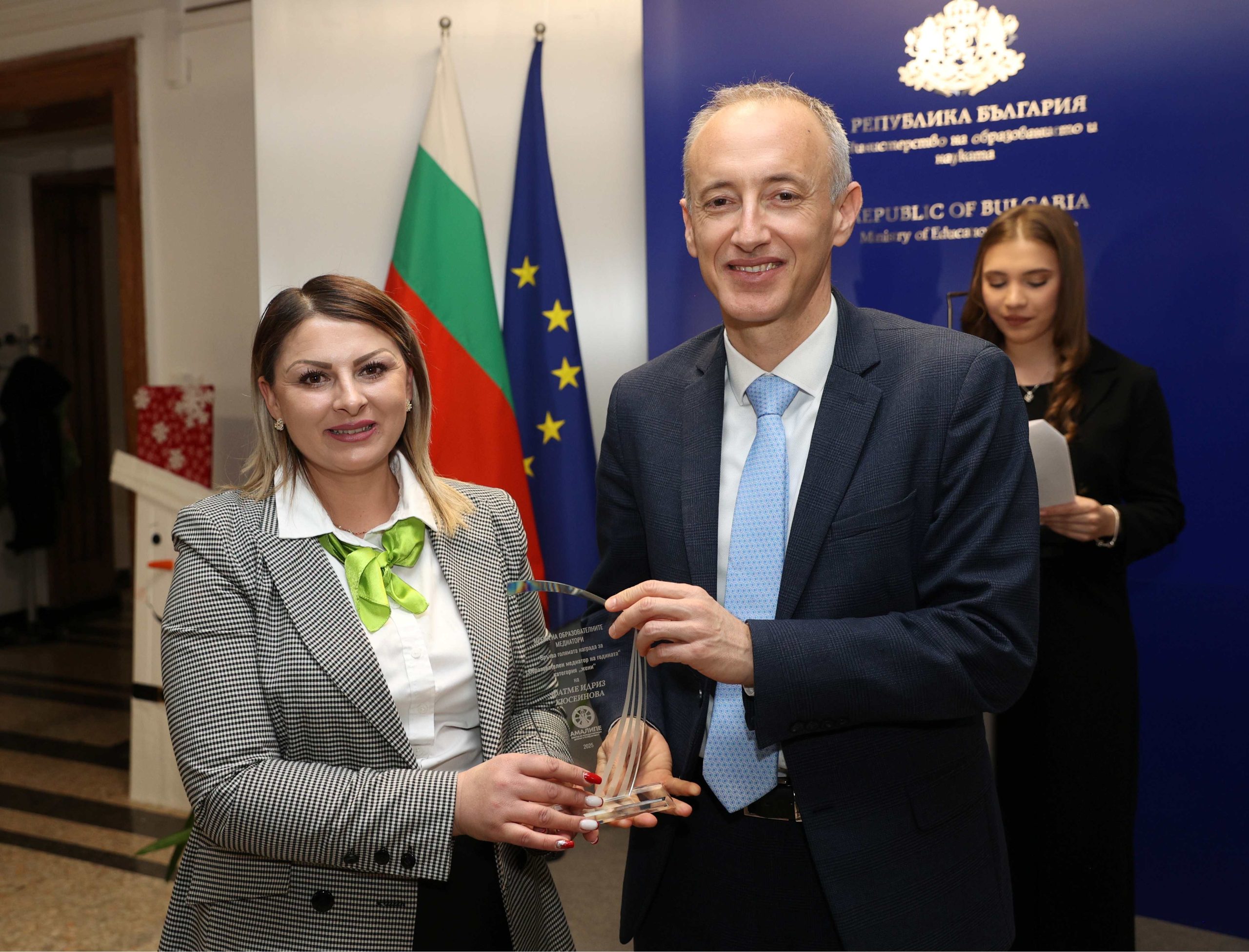 Специалният приз „За значим принос в превенцията на отпадането от училище“ отиде при Адриана Арифова, която работи в ПГСС „Сергей Румянцев“ в Луковит.