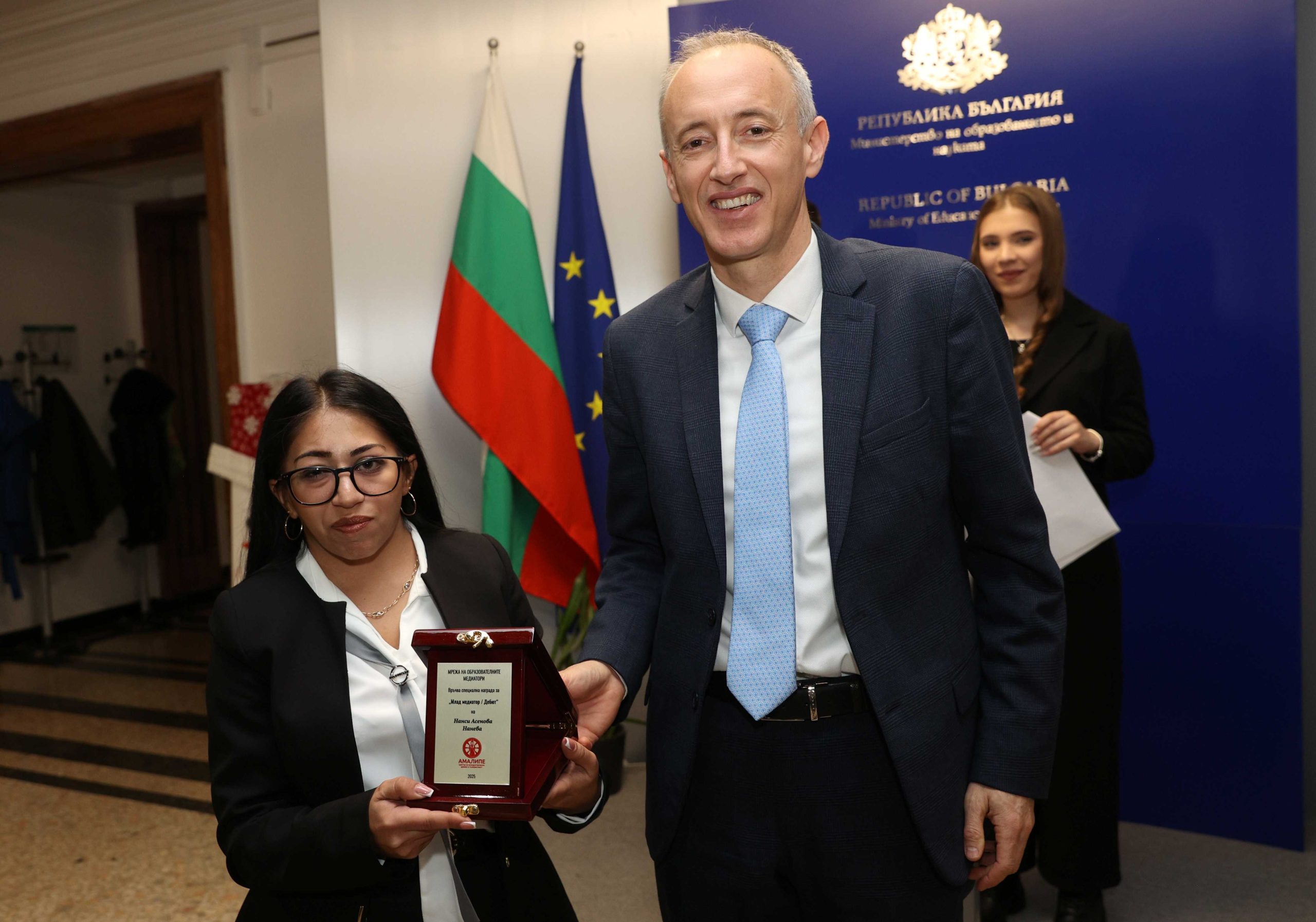 Церемонията за връчване на отличията на призьорите за 2025 г. се проведе в Министерството на образованието и науката. Наградите връчи министърът на образованието и науката Красимир Вълчев.