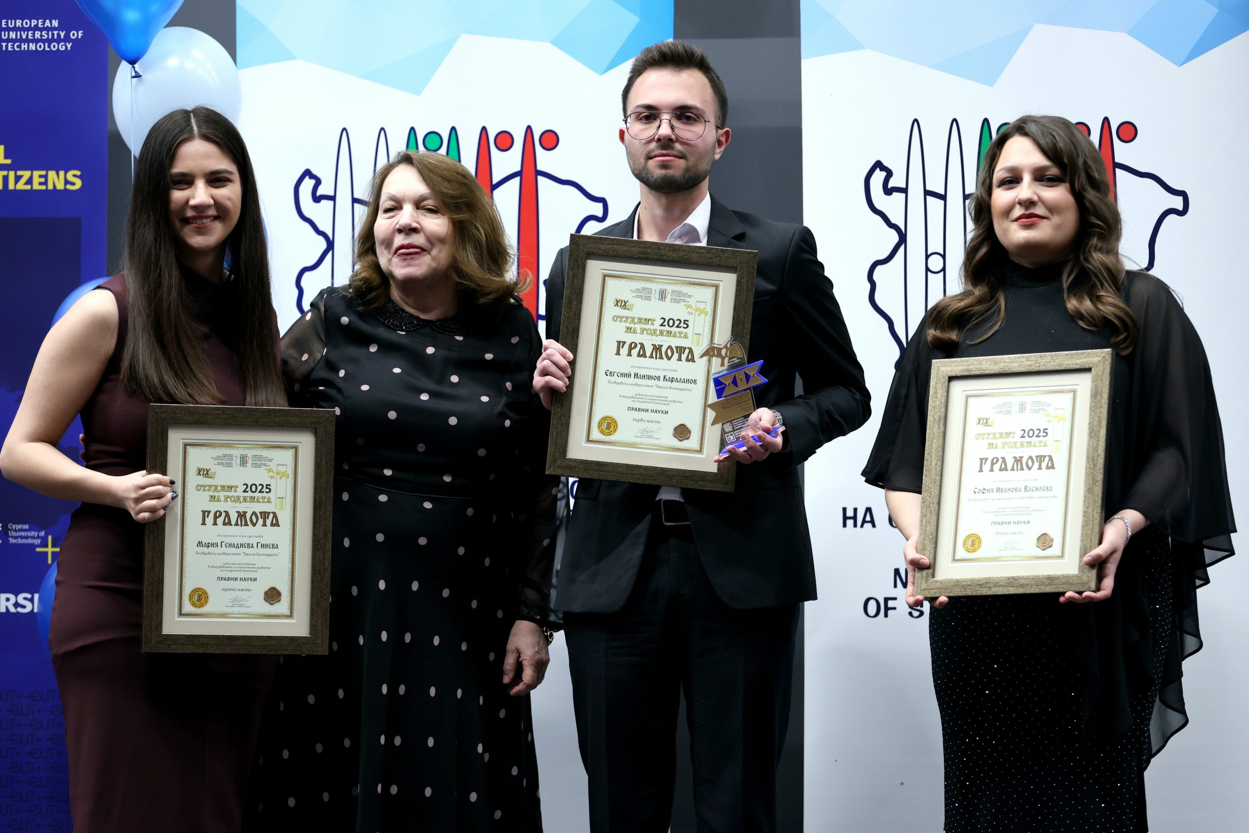 Министърът на образованието и науката проф. Сергей Игнатов и председателят на Националното представителство на студентските съвети Ангел Стойков връчиха Голямата награда „Студент на годината“ на бъдещия архитект Ивана Дилянова – студент в V курс в Университета по архитектура, строителство и геодезия, специалност „Архитектура“.