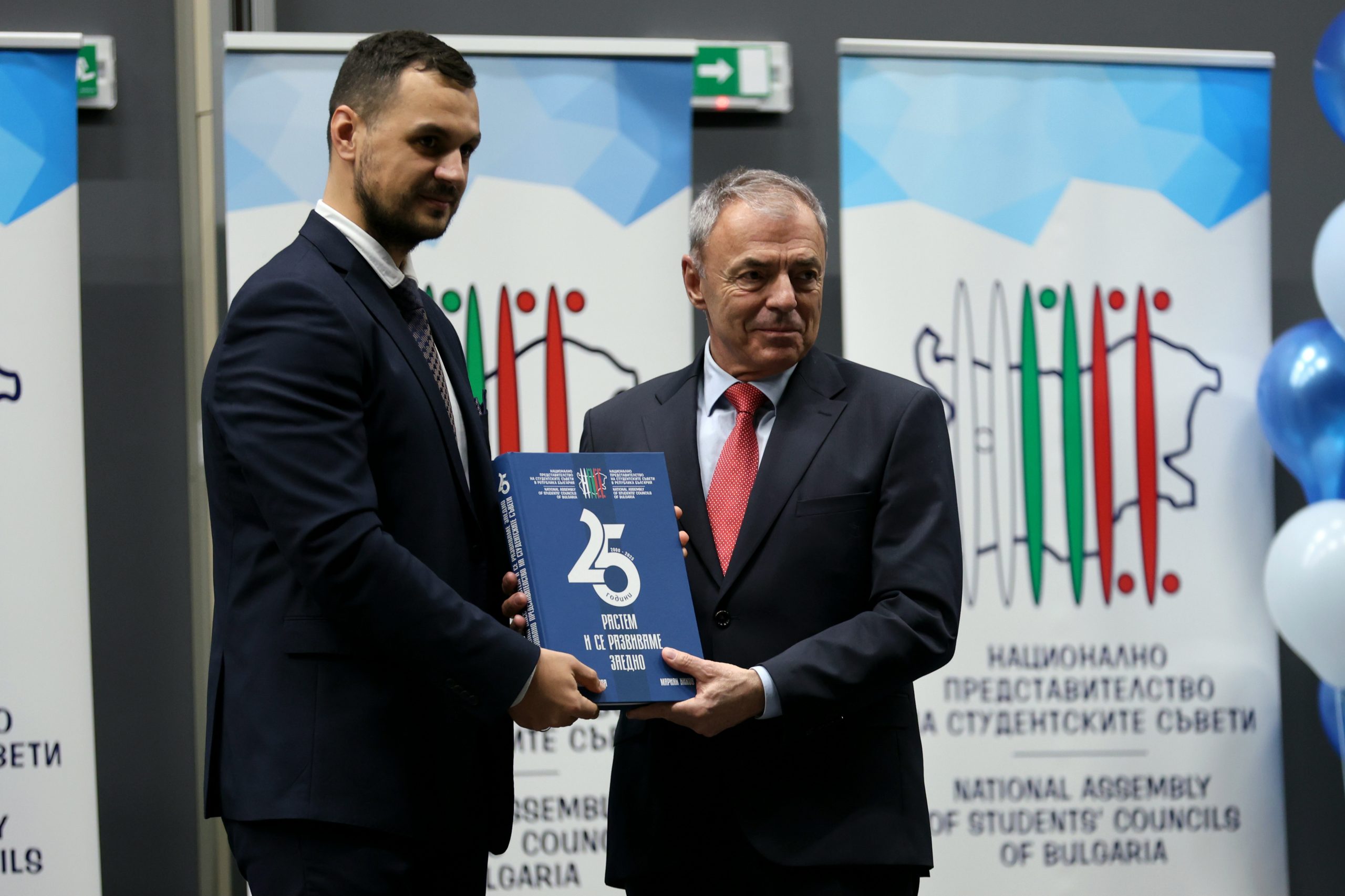 Просветният министър получи от председателя на НПСС подарък – книгата „25 години Национално представителство на студентските съвети“.