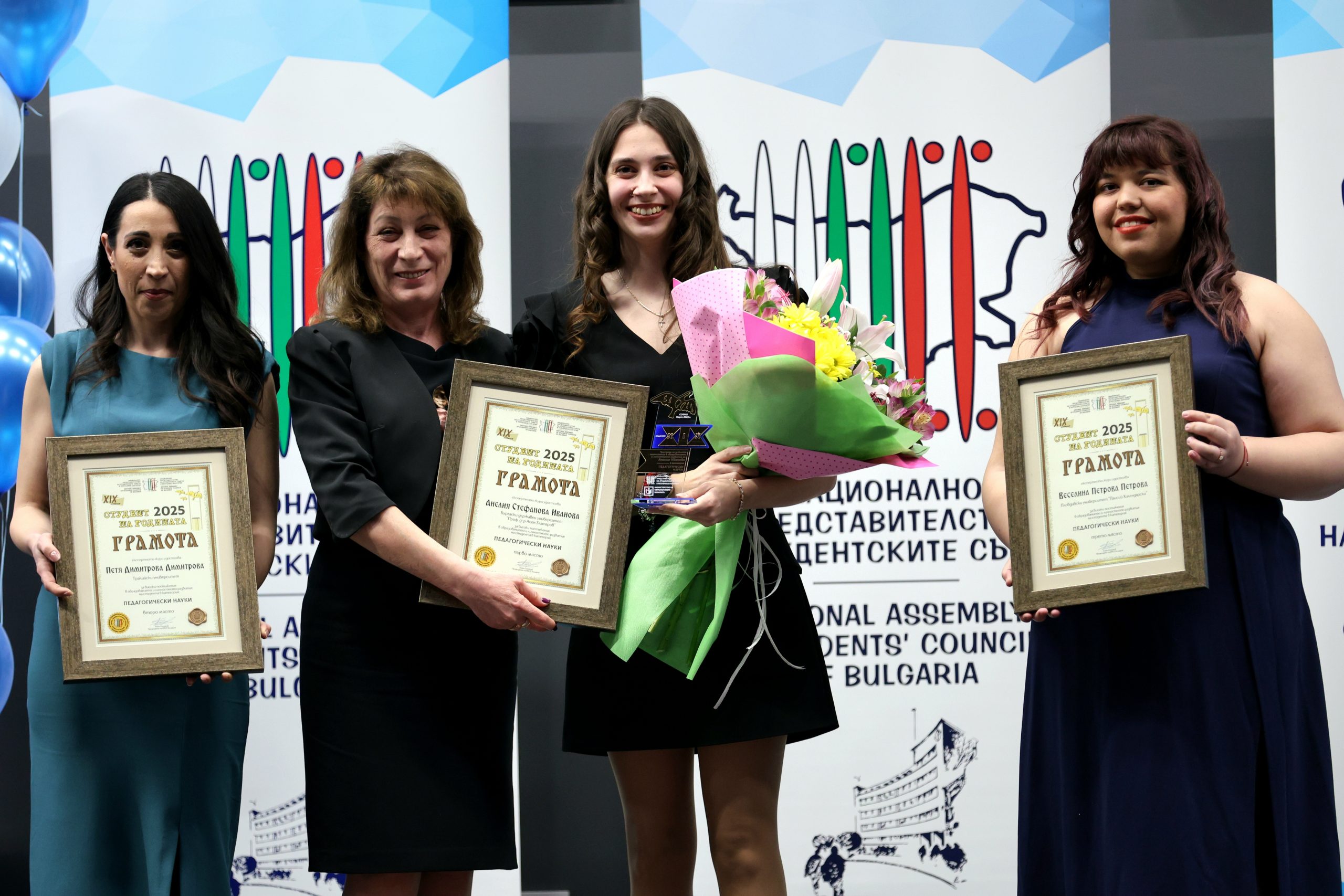 В категория „Педагогически науки” наградата получи Анелия Иванова, студент в Бургаския държавен университет „Проф. д-р Асен Златаров“, като отличието беше връчено от Албена Михайлова – главен секретар на Националната агенция за оценяване и акредитация.
